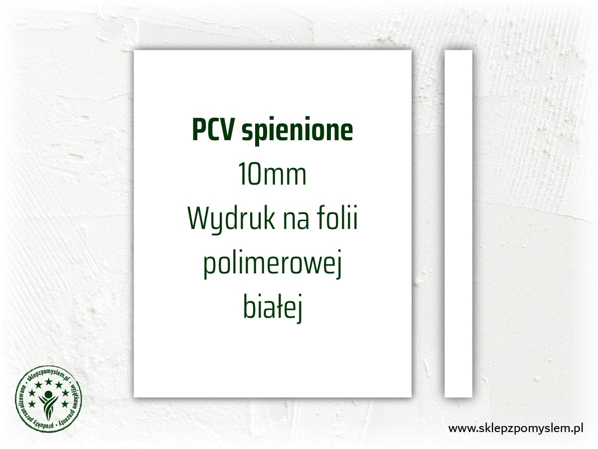 Prostokątna tablica / tabliczka / szyld z PCV spienionego 10 mm z nadrukiem UV LED na folii polimerowej. Idealna do zastosowań wewnętrznych i zewnętrznych. Dostępne formaty od 10×15 cm do 70×100 cm (inne rozmiary na zamówienie). Trzy warianty wykończenia:
